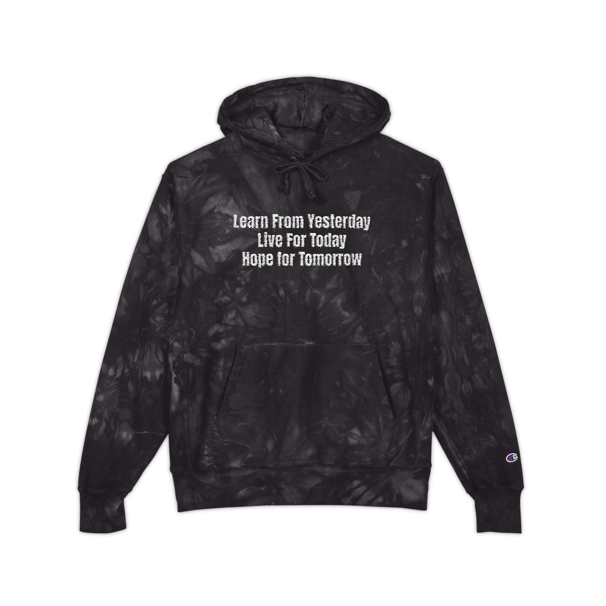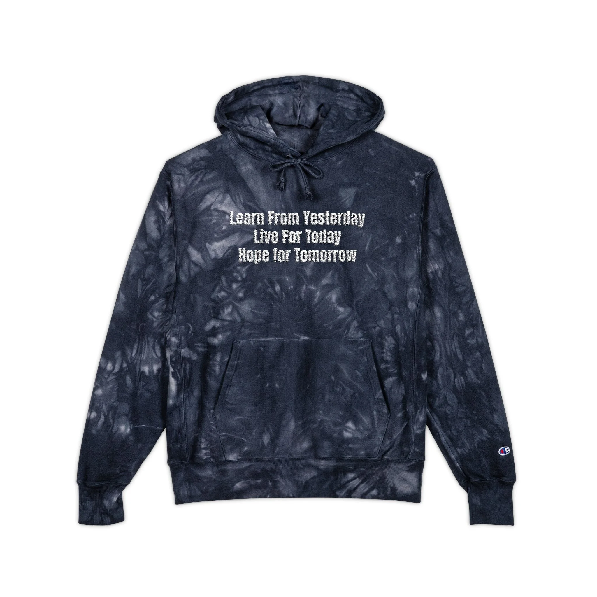 Tie-Dye Embroidered Hoodie — Black Galaxy Tie Dye Hoodie with White Script