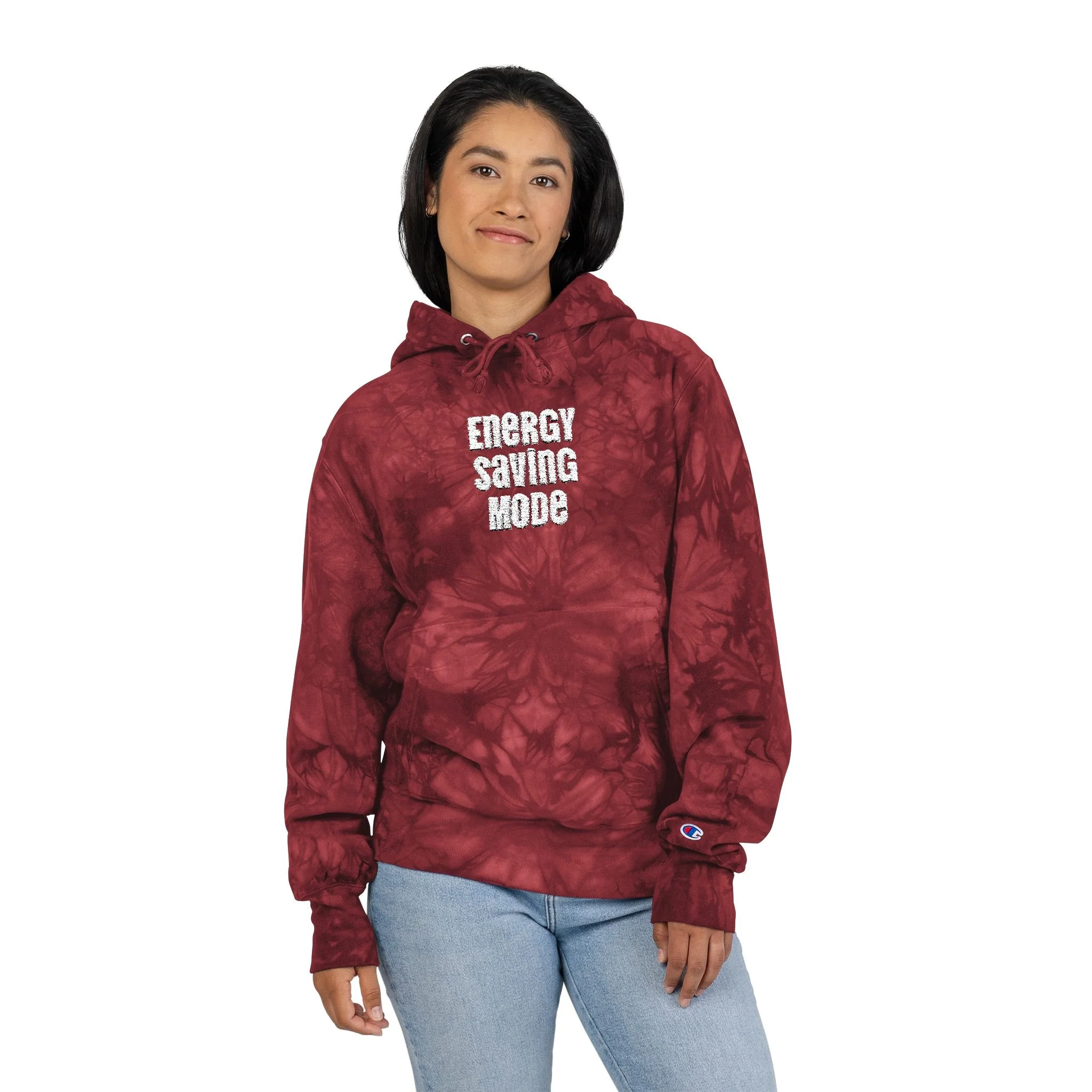 Tie Dye Hoodie — 'Energy Saving Mode' Embroidered Pullover Hoodie